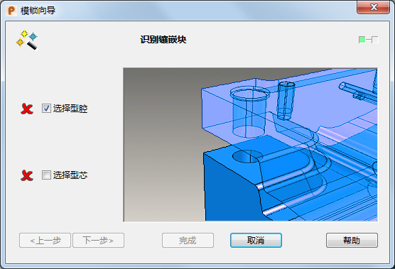 使用此页面可选择并识别型芯与型腔镶嵌块。镶嵌块可以是实体或部件。
