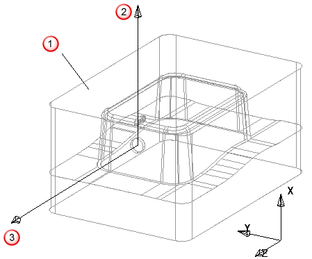 - 将 X 轴指向绘制方向调整工作平面方向,使 X 轴指向型腔、远离型芯,使 Z 轴指向侧提取方向。