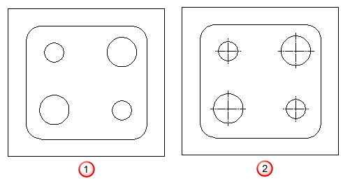 实体特征的圆弧中心点和孔图案的中心点在隐藏视图中绘制。如果不存在要隐藏的项目,会显示一条错误消息。