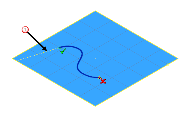 • 单击位于每条参数曲线末端的图形手柄,以指定从何处延长。 表示从此端延长参数曲线。