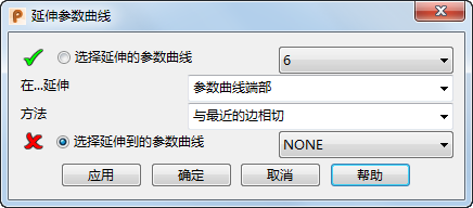 注: 如果已选参数曲线闭合,则曲线延长选项无法工作。可以使用“剪切参数曲线”选项打开闭合曲线。
