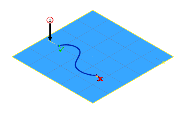 • 从“在...延长”下拉列表中选择一个选项。已选参数曲线上显示的点编号可供您查看哪些点是开始点,哪些点是结束点。