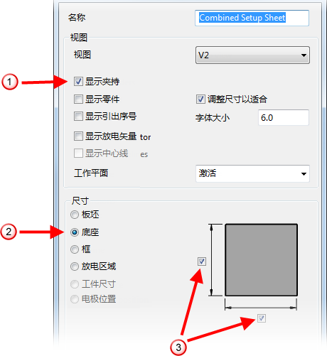 从“视图”列表中选择“顶部查看”。以下“尺寸”选项可用: