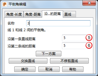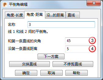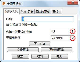 平倒角的编辑方式与普通直线不同。它有其自己的特殊编辑功能,使您可以将其定义从一种类型更改为另一种类型。