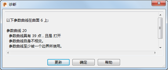 - 单击“更新”可以更新被编辑的参数曲线,以及对话框中的信息。您还可以更改为“边界编辑模式”,单击此按钮可以显示有关边界的诊断信息。