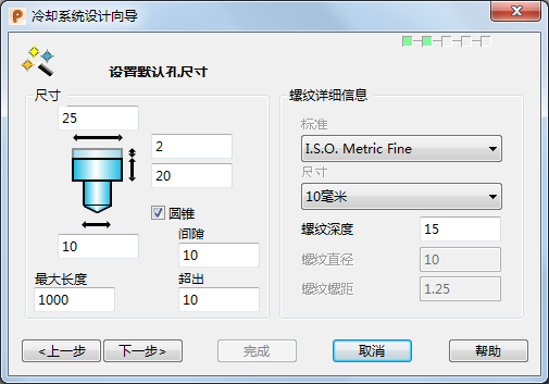 这些值用于创建孔的预览。您以后可以在向导中先编辑各个孔,然后再创建它们。