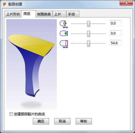 曲率 - 可以输入一个值或者拖动滑块来设置鞋跟底部前面的曲率数值。