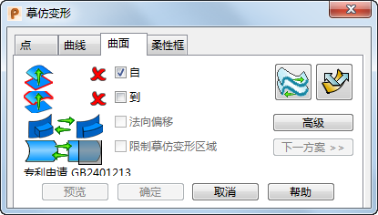 1. 选择要在摹仿变形过程中使用的“自”曲面