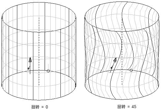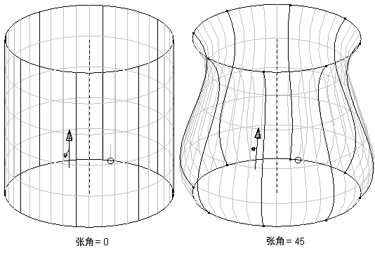 您可以修改沿纵向线或穿过横向线定义的张角和扭转角。