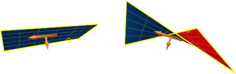 在以下示例中,拖动了曲面上的两个拐角点,以从标准平面更改其形状。右侧的图像使用了键盘上的 N 键,以沿垂直于曲面法线的方向移动曲面。