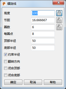 按钮可锁定或解除锁定螺旋线的“高度”、“节距”和“圈数”。