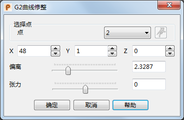使用“G2 曲线修整”对话框编辑 G2 曲线的形状。