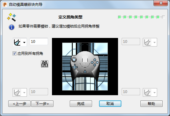 “定义拐角类型”页面可以为模块的每个拐角指定拐角类型。