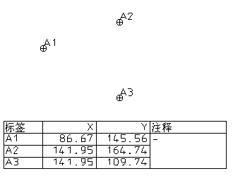 这些点的坐标列在了规划中。规划中还绘制了注释列。已选点的注释列行被合并。
