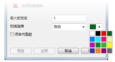如果操作失败,则对话框底部会显示错误消息“无筋曲面曲面创建”或“输入面不可用”。