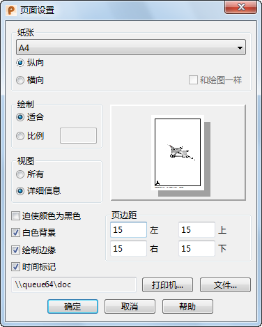 打印机 - 打开“打印设置”对话框,该对话框可用于更改 PowerShape 中的当前打印机设置。