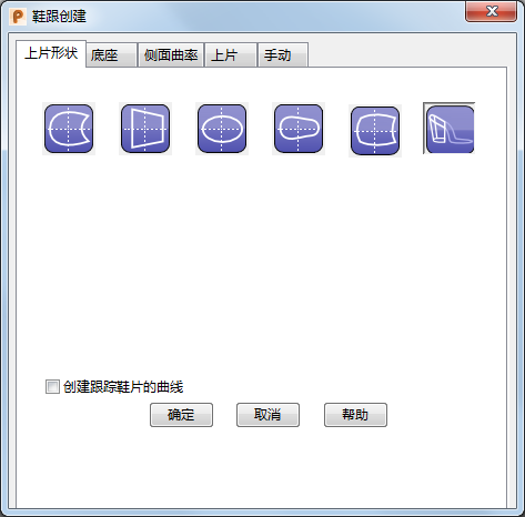 使用“上片形状”选项卡可编辑鞋跟上片形状。此选项仅当您使用参考曲面时可用。