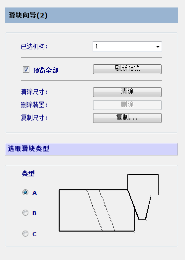 复制尺寸 - 此选项使您可以将已有滑块中的部件复制到当前已选的滑块。