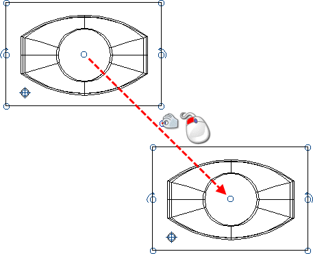 与中心手柄不同,该手柄使用智能光标输入位置。例如,将智能光标悬停在关键点上时,会显示构造线和标签。