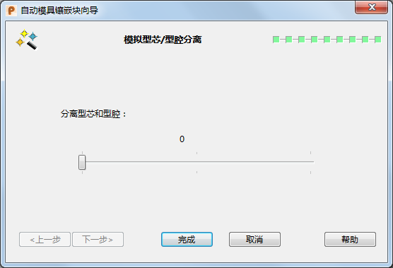 “自动模具镶嵌块向导”-“模拟型芯/型腔分离”页面