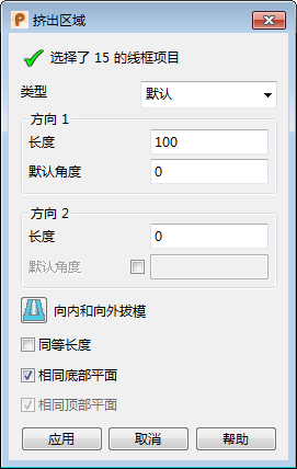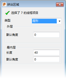 系统将显示“挤出区域”对话框: