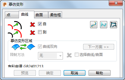 限制方法 - 从下拉列表中选择一个选项以使用曲线或曲面来限制摹仿变形的区域。您可以选择: