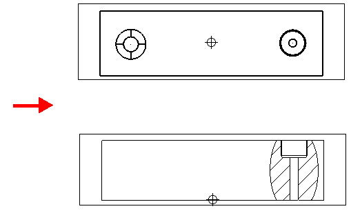 - 右键单击“相关视图”并从“绘图视图”上下文菜单中选择“隐藏”。该视图将显示“Scrap Section 特征”列表中的孔,并且其它所有特征将隐藏: