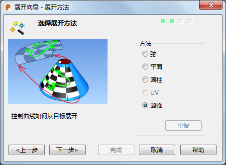 ”。系统将显示“展开向导”的“曲线选择”页面。