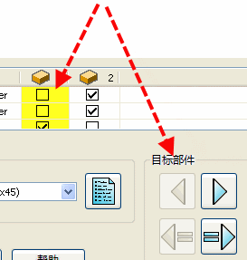 单击这些按钮可更改目标部件与所选源部件的相交次序: