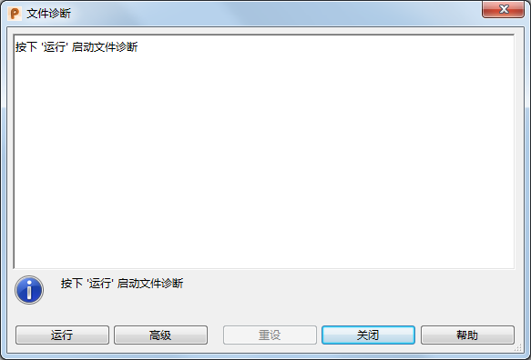 - 高级 - 切换到高级版本的文件诊断,并显示“文件诊断 (高级模式)”对话框。在这种模式下可全面控制文件诊断执行的检查和修复。此选项仅供经验丰富的用户使用。