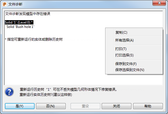 - 重设 - 重新加载文件诊断修复之前保存的模型。此选项只在修复之前已保存模型的情况下可用。