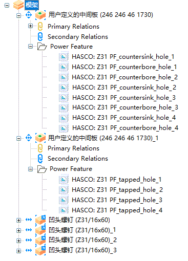 Power Feature 将自动生成,且模型和部件树将更新: