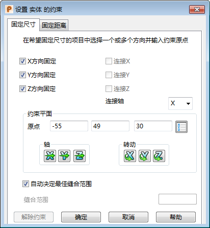 - 固定距离 - 使用此方法可保持两个实体或两个用户定义特征的相对位置。