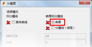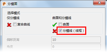 - 从“分模面”对话框中选择“分模线”选项: