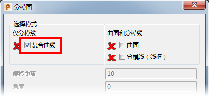 - 从“分模面”对话框中选择“复合曲线”选项: