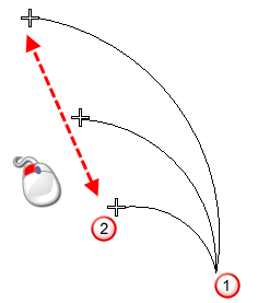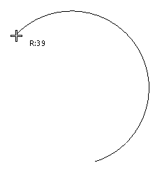 请注意,橡皮筋是固定到圆弧两端的。当移动鼠标时,橡皮筋将显示圆弧的形状,就如同光标是第三个位置一样。此外,半径也会显示,并会随着光标的移动而更新。如果半径增量较小,则放大;如果半径增量较大,则缩小。