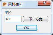 当您输入第三个位置时,将显示“圆弧确认”对话框,以显示圆弧的半径值: