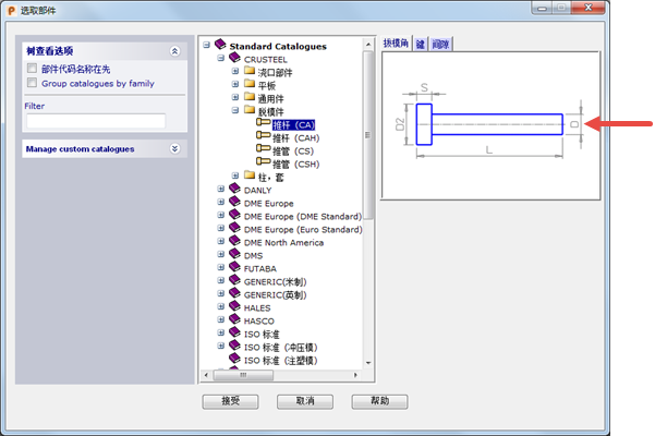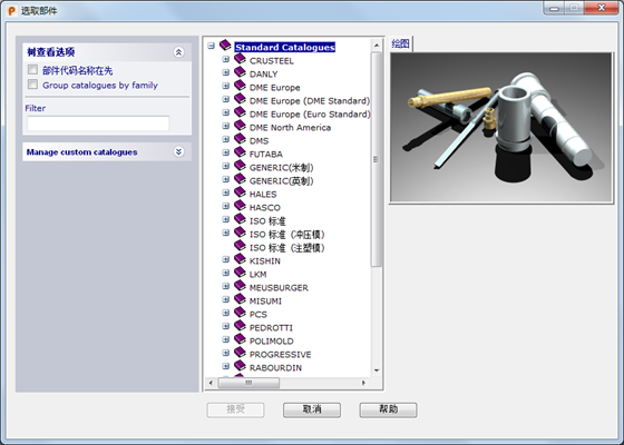 - 选择一个样本以显示部件列表。选择要创建的部件。部件的图像将显示在对话框中: