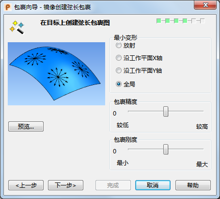 使用“镜像创建弦长包裹”页面指定弦包裹元素应用到目标对象的方式。