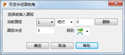 使用此对话框上的选项可沿圆倒角插入圆弧。它还可设置各个圆弧的半径如何变化。