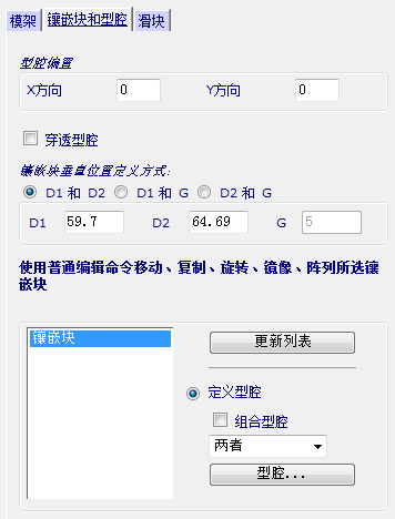 此选项卡指定镶嵌块或型腔的位置。