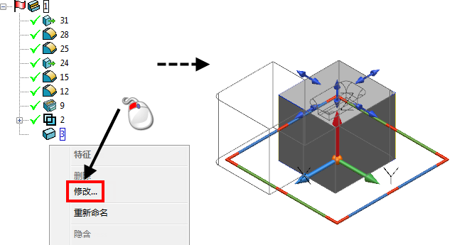 - 双击特征进行快速修改 - 选择此选项可设置特定于快速修改特征的对话框(包含更少的图片和编辑选项),以在双击实体特征时显示为默认值。