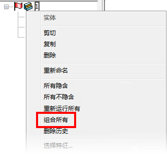 - 在树中选择单个特征,然后从“实体”树菜单中选择“组合所有”。