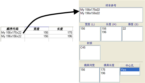 4. 对“尺寸”工作表中的数据进行所需的更改,并返回至“选择部件”对话框。