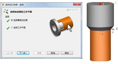 使用“径向切口”特征在可在车铣复合机床上铣削加工的实体中创建型腔。