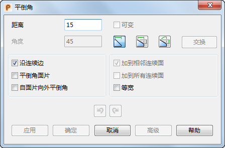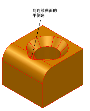 这样,平倒角将不会伸展到相邻曲面之外。若要使平倒角伸展到所有曲面之外,请使用“增加所有连续面”选项。