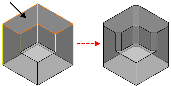 如果选择一条边,系统将选择一条新路径,其中含有包含这条边的实体面片的所有边。