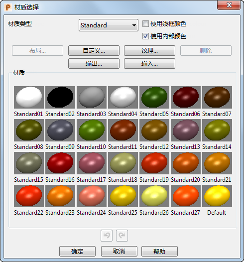 - 通过单击该对话框“材质”区域的其中一个图形来选择材质。