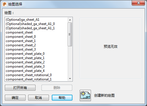 2. 单击“绘图”选项卡 >“绘图”面板 >“打开”。从“绘图”列表中,选择所需的 ga_sheet,然后单击“确定”。