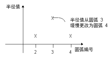 在这三种变化中,半径从圆弧 3 到圆弧 4 的变化: